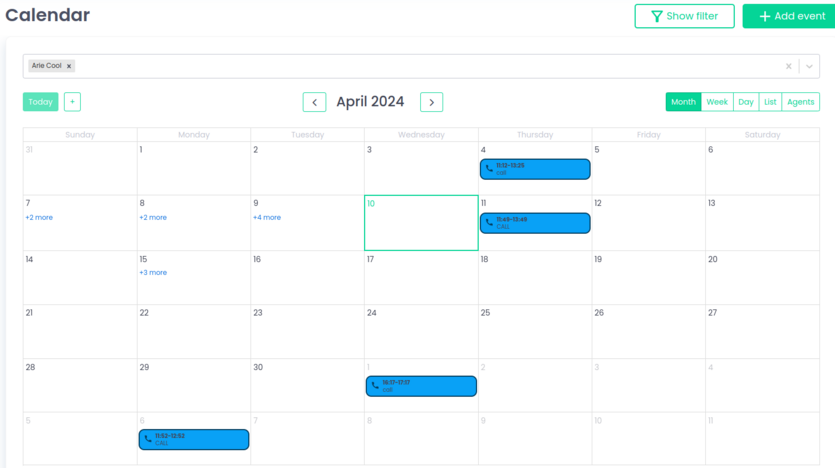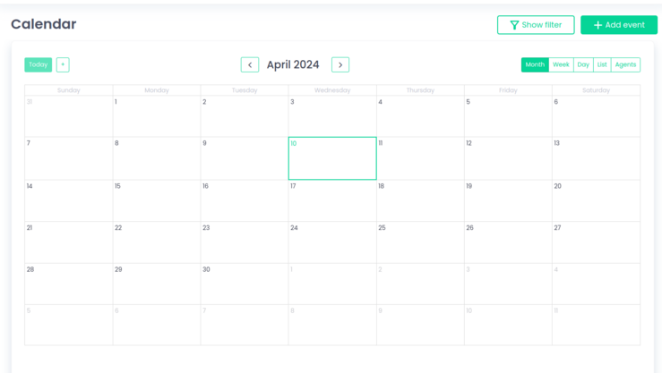 Ici vous pourrez visualiser tous les événements que vous aurez programmer.Si vous êtes un administrateur, vous pourrez y voir et gérer également tous les événements créer/attribuer à vos collaborateurs.
