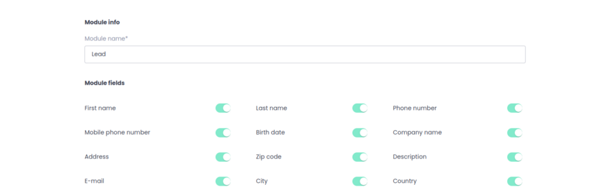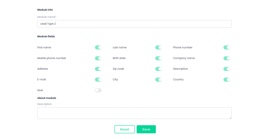 Les modules sont des types de prospect. L’intérêt des modules et de vous laisser toute latitude pour créer les types de données et variables qui répondent le mieux à vos besoins.