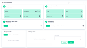 Le dashboard de la partie CRM permet de visualiser les statistiques clefs suivantes: