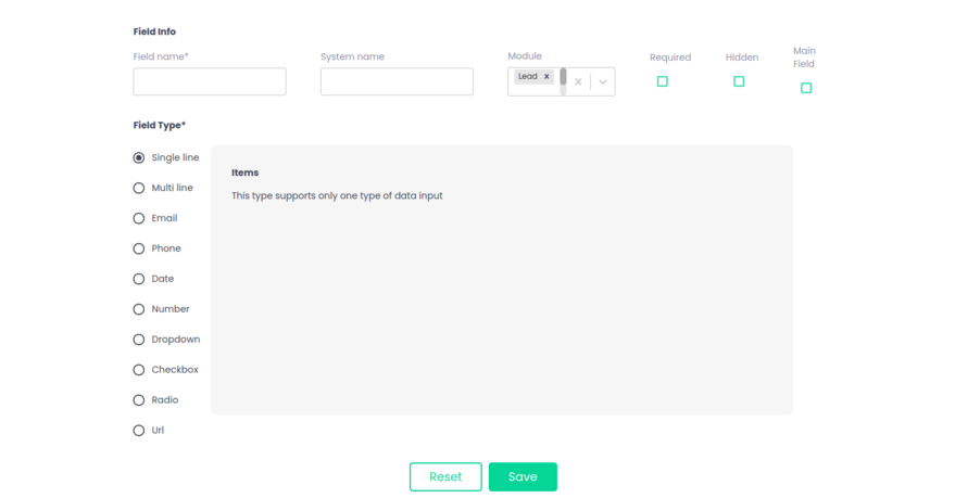 • Main Field: Si cette option est cochée, les prospects associe à cette variable seront designer par elle. Exemple: Si mes champs principaux sont "First_name" et "Last_name" et que leurs valeurs sont respectivement "John" et "Doe", alors le prospect sera défini par la chaîne de caractère "John Doe". Important: On ne peut avoir plus de deux variables "Main Field" et les variables "Main Field" par défaut sont "First_name" et "Last_name".