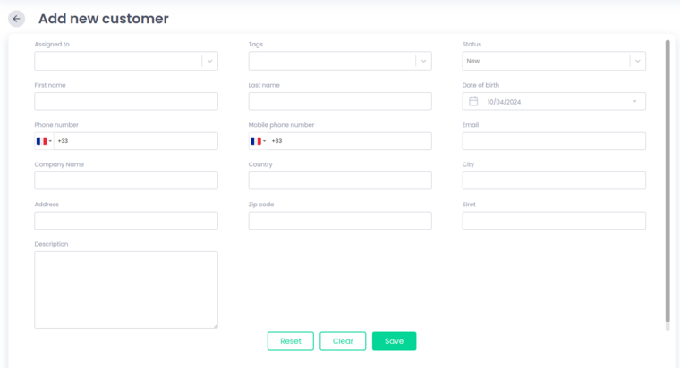 Pour finir, si vous souhaiter créer un nouveau prospect, cliquez sur le bouton "Add new customer" et remplissez les champs associés.