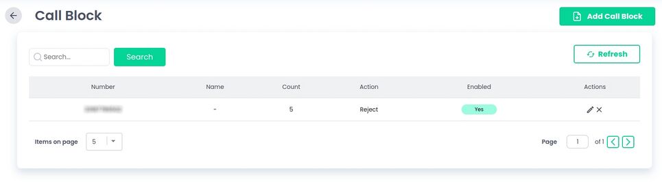 Cette section vous permet d'ajouter des numéros de téléphone qui seront tout simplement bloquer en entrant, par le système, quelque soit l'extension appeler.