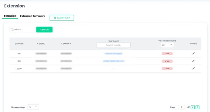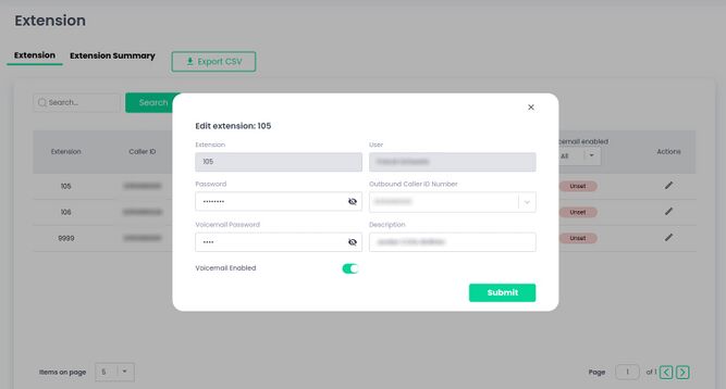 Cette section vous permet de gérer vos extension (numéro sortant, attribution, etc...).