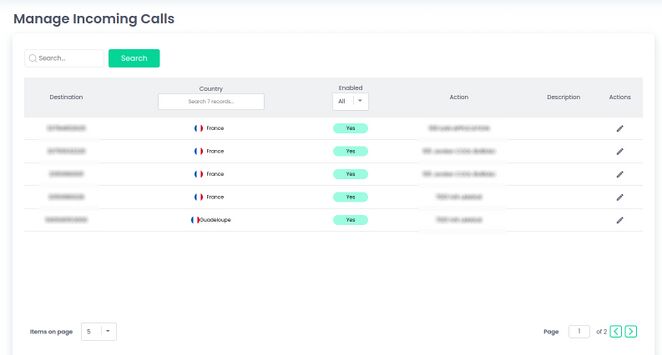 Cette section vous permet de gérer vos numéro de téléphones et les actions qui leur sont associés.