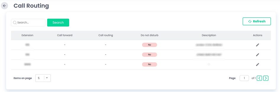 La section call routing vous permet si nécessaire de rediriger les appels destinée a vos extensions vers d'autre numéro de téléphone.