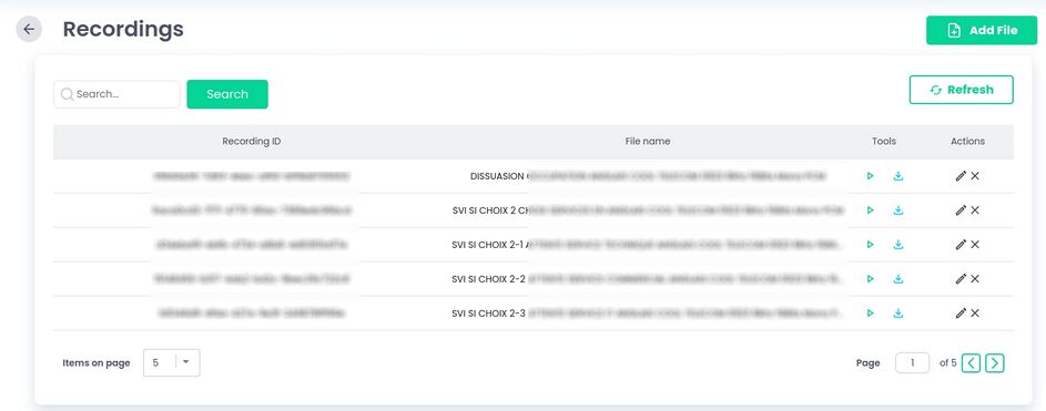 Dans cette section, vous pouvez téléverser et gérer tous les enregistrements que vous serez amener a utiliser dans vos boites vocales et IVR.