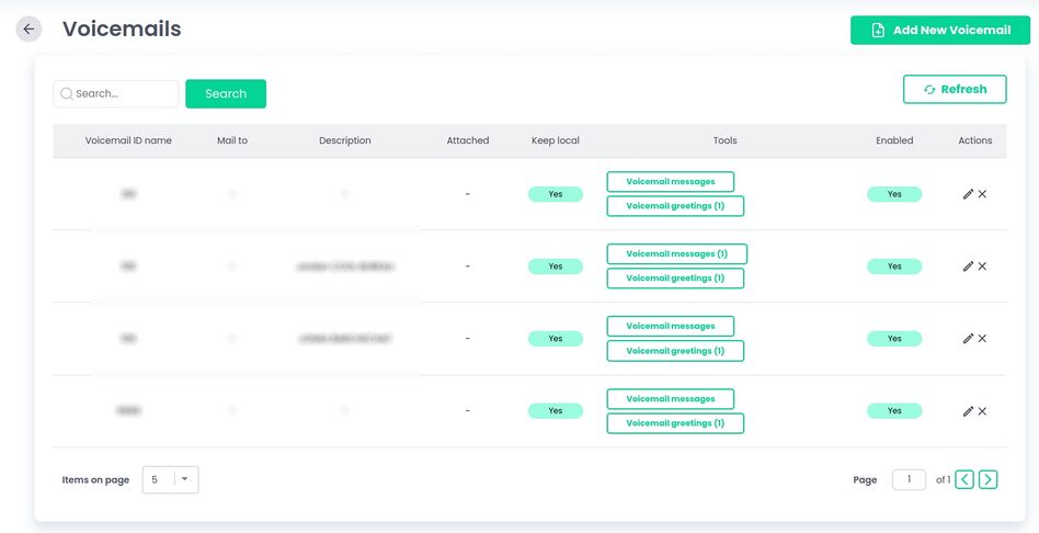 La section voicemail vous permet de consulter vos messages vocaux et de changer vos messages d'accueil.