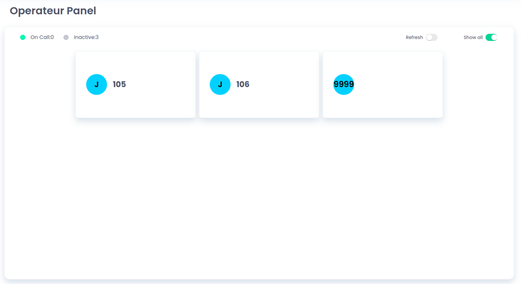 L'operator panel vous permet de visualiser et dans une certaine mesure gérer les appels de vos extensions. Cette section vous montrer dans quel état se trouvent chacune de vos extensions (Appel entrants/sortants/locaux, est ce que l'extension sonne, etc...).