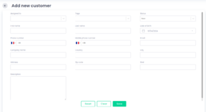 Pour finir, si vous souhaiter créer un nouveau prospect, cliquez sur le bouton "Add new customer" et remplissez les champs associés.